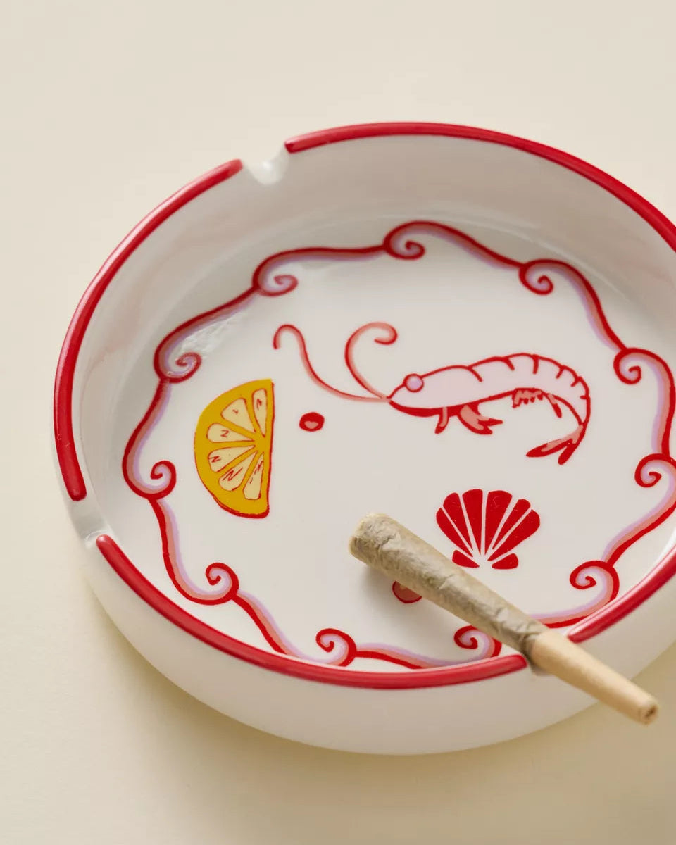 以充滿趣味與復古風格的設計,為空間增添一抹玩味感。圓形造型搭配邊緣凹槽設計,可放置香薰、草藥等。表面施以個性釉彩並印有懷舊圖案,每一件皆獨一無二。