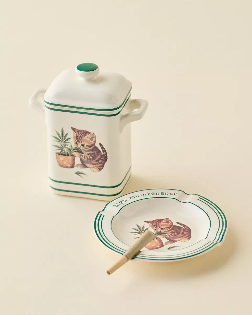 這款陶瓷煙灰缸為你的空間帶來復古俏皮的氣息。圓形造型,側邊刻有凹槽,方便放置香薰或草藥。表面施以彩色釉料並印有我們喜愛的懷舊圖案,每一件釉色呈現都有細微差異。