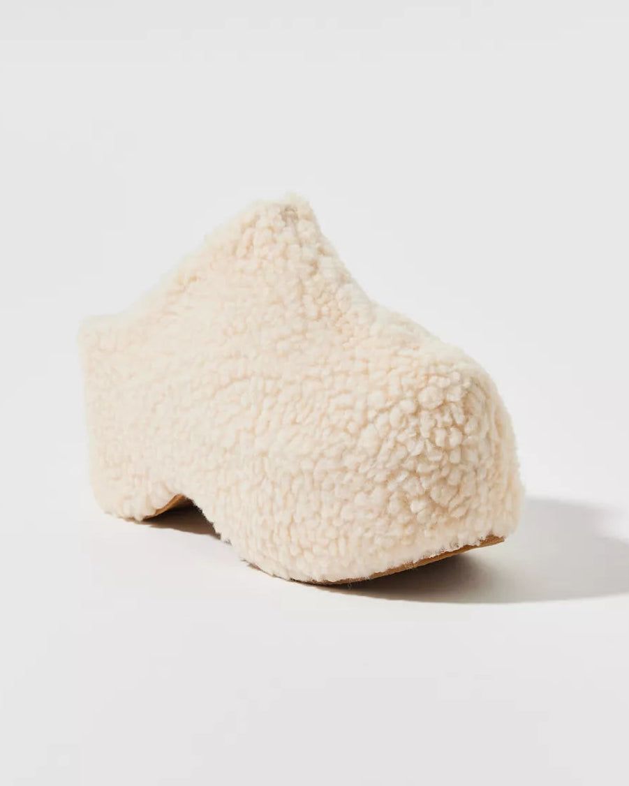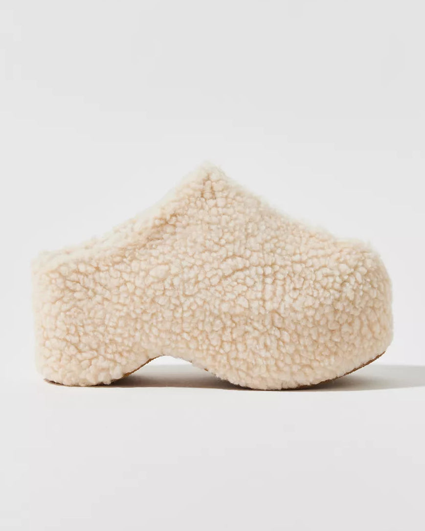 Azalea Wang Dolorita 仿羊羔絨厚底木屐鞋 (米色)