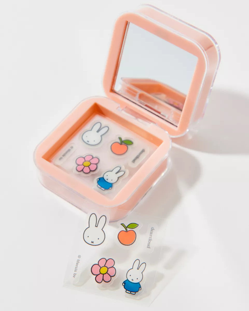 以可愛療癒的 Miffy 主題設計,結合韓系護膚配方,讓護膚變得更有趣!這款 dearcloud 聯名款痘痘貼含有水楊酸與菸鹼醯胺成分,有助於舒緩與修護肌膚。套組內含 24 片 Miffy 造型痘痘貼與可重複使用的鏡面收納盒,方便外出隨身攜帶,是兼具實用與美感的護膚小物。