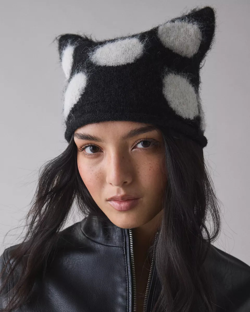 以可愛波點設計打造冬日亮點!這款 Mylo 圓點毛帽 採用柔軟舒適的絨感針織布料,全帽覆蓋圓點圖案,結合俏皮與時尚感。方形帽型設計為經典毛帽注入新意,是寒冬造型的理想單品。