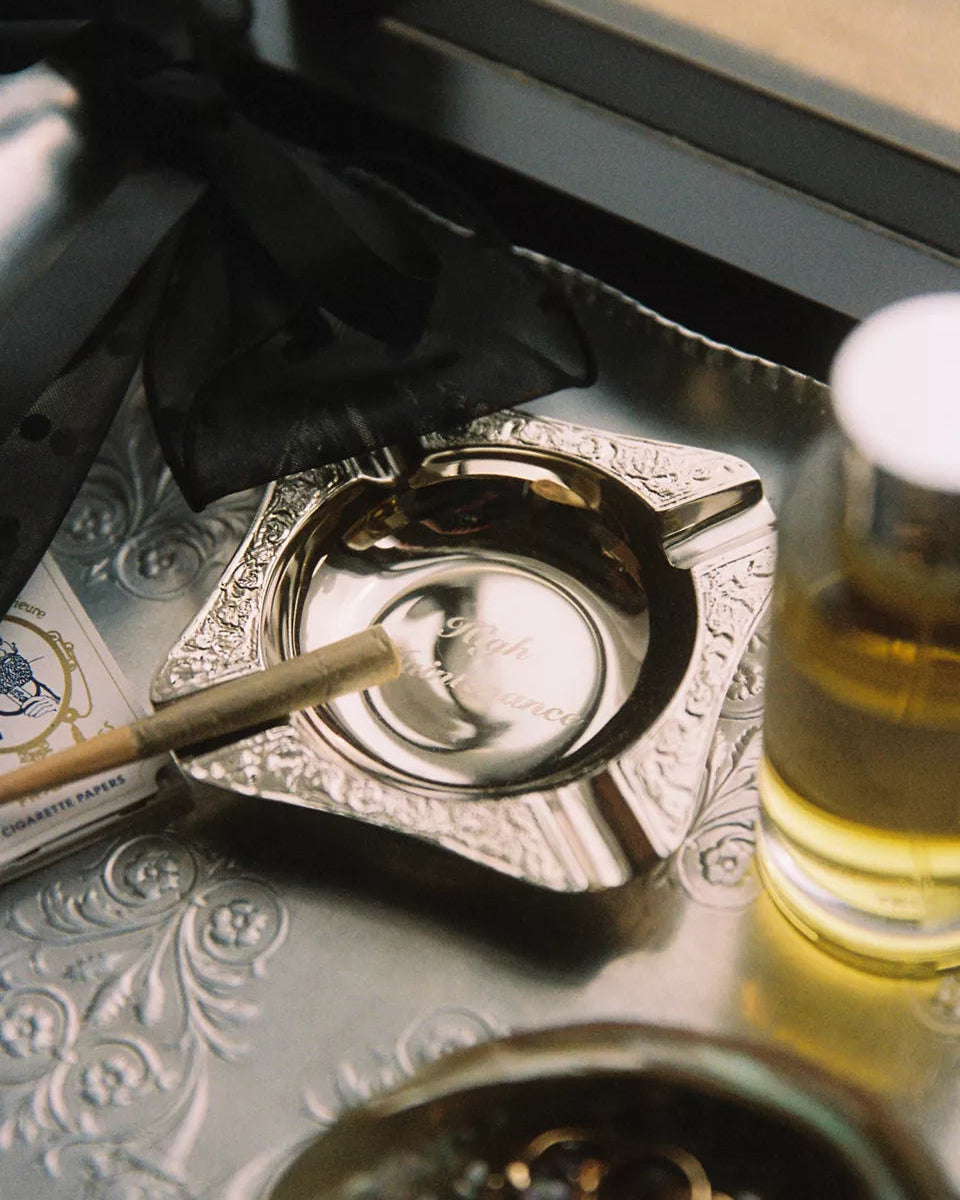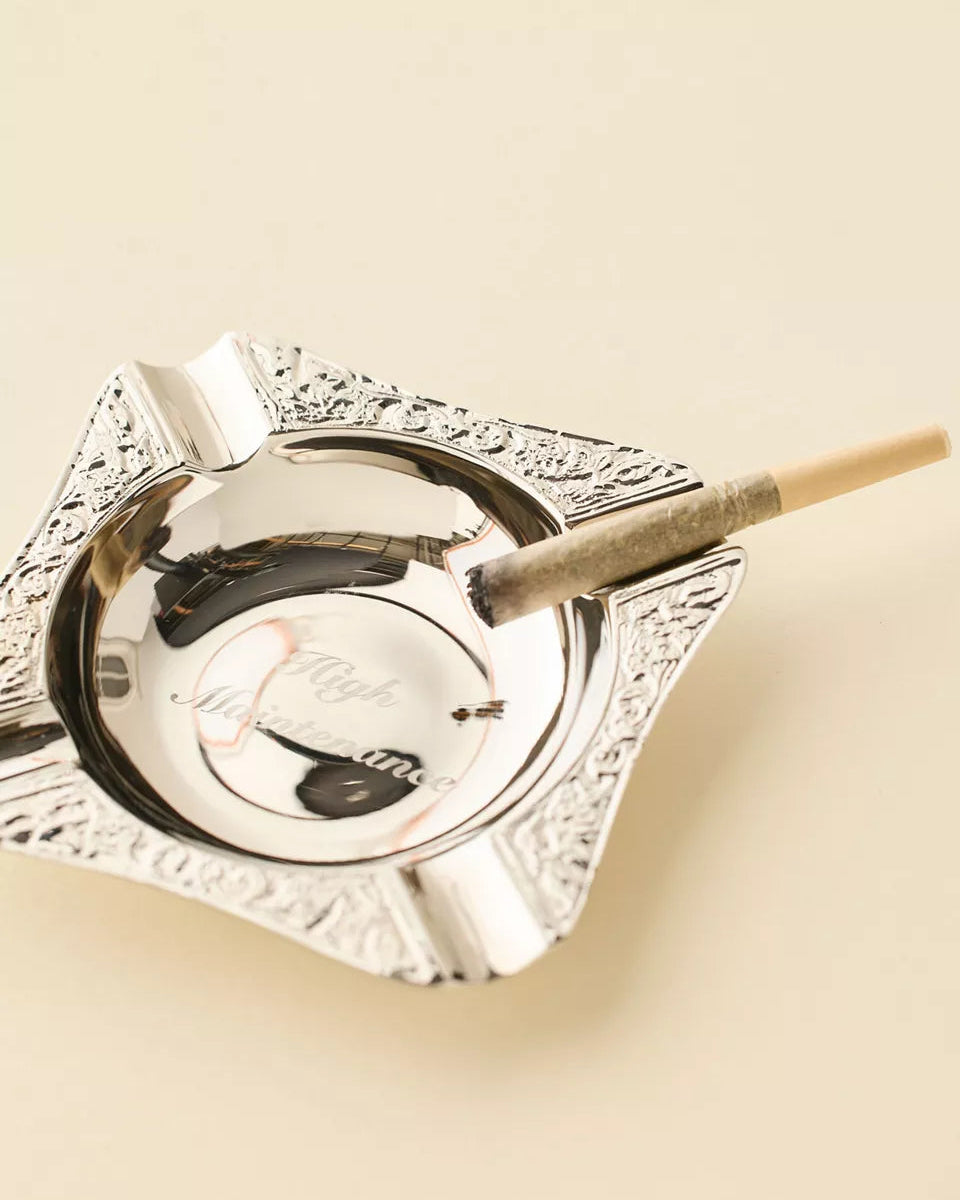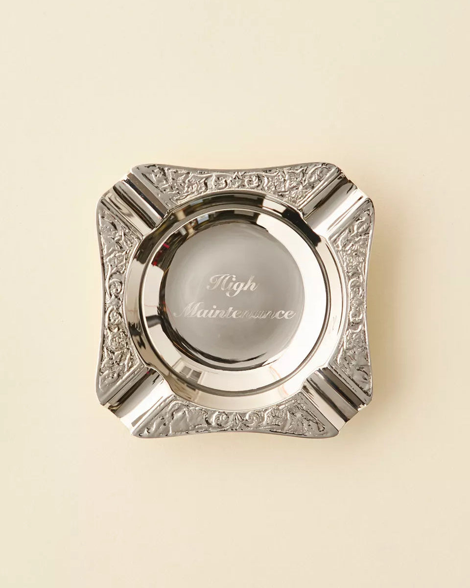 這款時尚金屬煙灰缸為你的空間增添優雅氣息。方形造型搭配精緻雕刻邊框,盤面中央刻有 “High Maintenance” 字樣。四角設有凹槽,可放置香草或香薰卷,是兼具設計感與實用性的理想選擇。