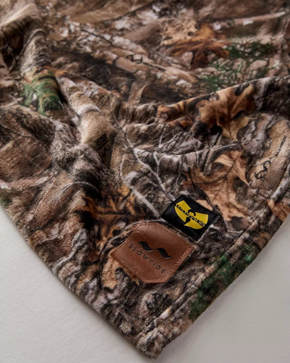 為你的空間增添街頭潮流氣息與溫暖觸感!這款 Slowtide X Wu-Tang Clan 聯名厚絨毯 採用柔軟厚實的搖粒絨材質,全幅印有迷彩圖案與經典 Wu-Tang Clan 標誌,兼具舒適度與收藏價值。無論是沙發、床上或旅途中使用,都能展現個性風格。